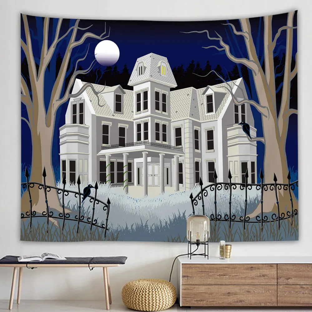 Steampunk Gear Moon Lamp Boat Tapestry Hippie Wall Hanging Black Moon Villa Tapestry Ceiling Backdrop Home Decor For Living Room